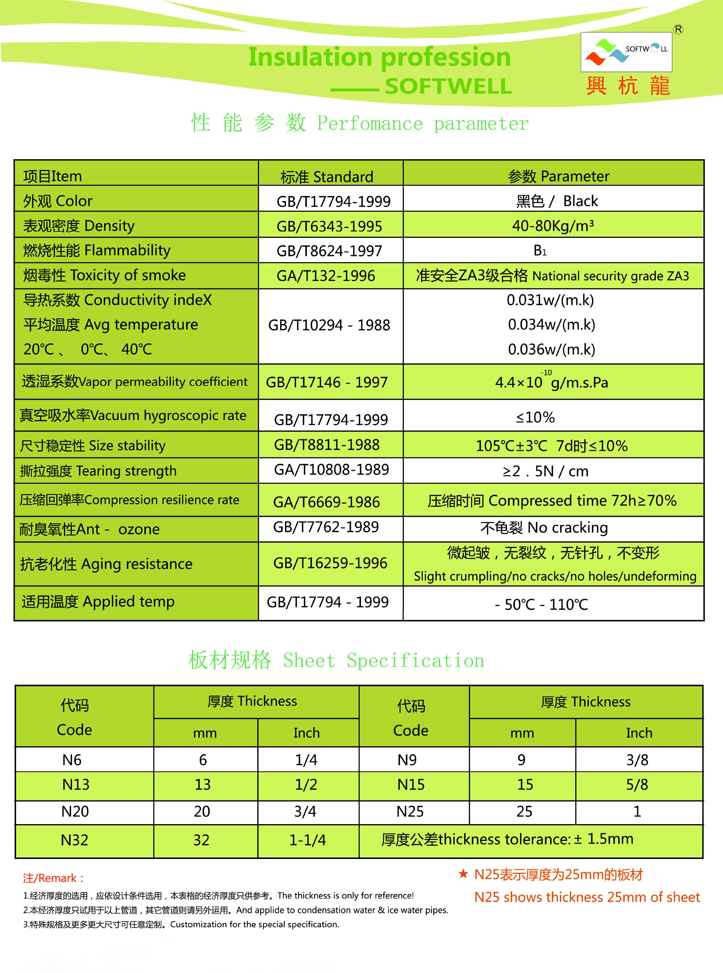 Properties:Dense foam structure、 waterproof、 goodbound ,innocuity and environmental friendly ,low smoking density and firepoof.